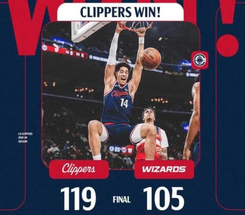 北京时间1月15日,NBA2025-26赛季迎来联盟焦点之战,洛杉矶快船队坐镇主场,迎战华盛顿奇才队。让人意外的是,快船队将保罗扫地出门后,再加上祖巴茨的受伤契机,球队竟然活过来了,近10场比赛更是豪取8胜2负,目前球队豪取三连胜,以16胜23负的战绩,排名升至西部第11位。
