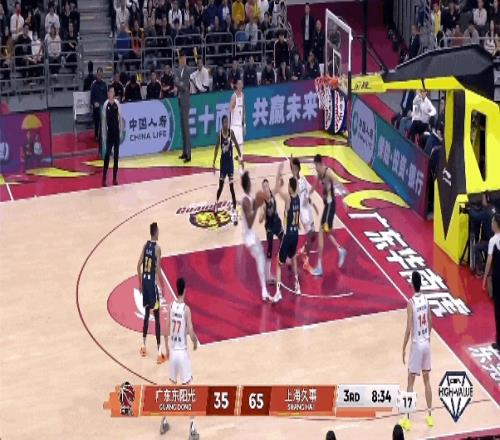 这一节比赛中,胡明轩和萨姆纳均有三分投进,但对于填平广东男篮自己挖下的分差巨坑,几乎没有用。本节最后35秒比赛时间里,洛夫顿在被包夹的情况下, 险些丢失球权,一片混乱中,他捡回球,底线中投打进。广东队后场发球失误,弗格笑纳大礼。第三节结束,上海男篮89-53领先于广东男篮。