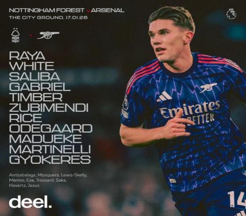 阿森纳客战诺丁汉森林:哲凯赖什、马丁内利、马杜埃凯首发