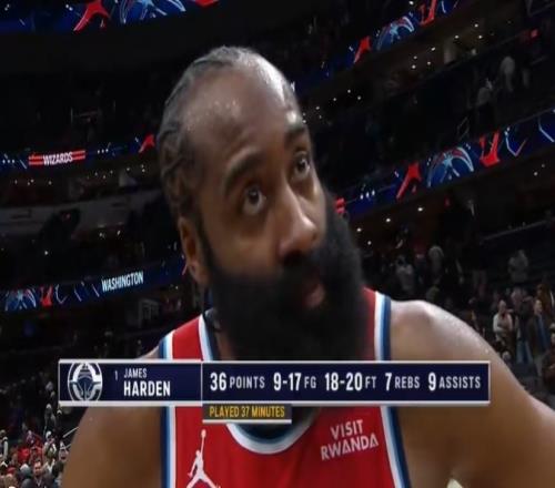 哈登:我们的年轻球员为比赛准备得非常充分功劳属于他们!