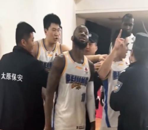 但本场比赛并没有轻易结束,山西男篮的球迷还有更多的表现。赛后,北京男篮的球员往球员通道走,此时山西男篮主场的球迷开始冲他们吐口水,还吐到了北京男篮外援杰曼的头上。