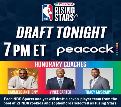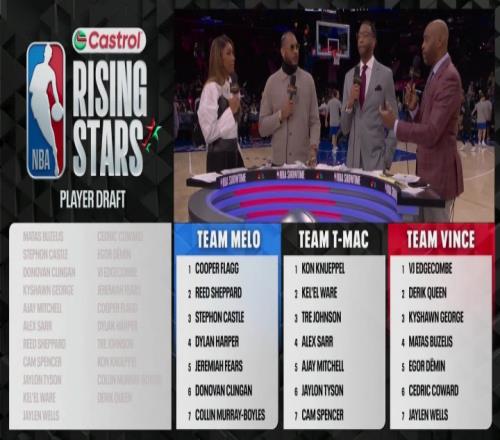体育播报01月28日宣 NBA官方于今日08:00直播NBA全明星新秀赛选人仪式,由安东尼、麦迪、卡特三名教练从21名NBA一年级、二年级新秀中各选择7名队员。