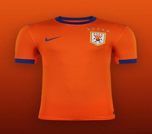 新赛季青岛海牛主场球衣通过由队徽向外延展的光影纹样呈现球队的速度与活力。亮橙色辅以深蓝色点缀相互呼应,使视觉层次更加清晰且富有张力。