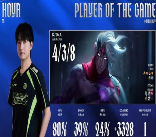 有点东西!HOYA上单维鲁斯全场伤害最高34.5K拿下第一局MVP