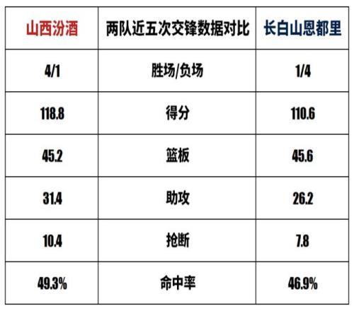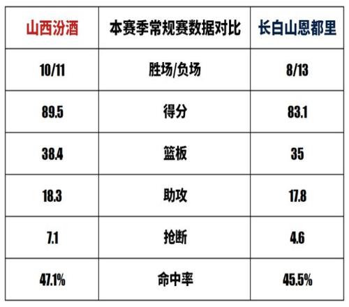 赛事前瞻常规赛第22轮长白山恩都里vs山西汾酒